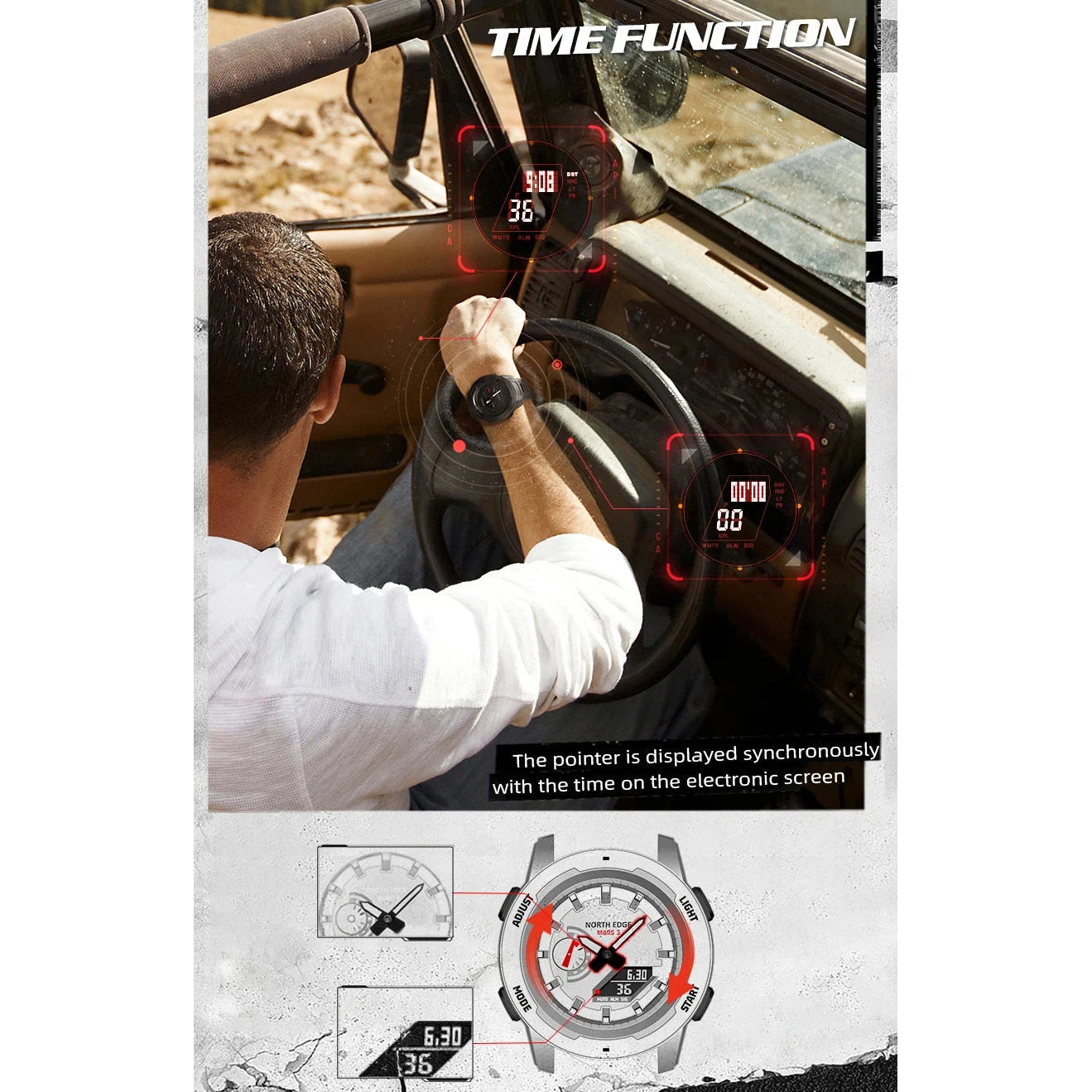 Flexibility is the key. Whether you prefer the classic 24-hour format or the military's 12-hour mode, the North Edge Mars 3 makes it easy to switch to suit your needs.