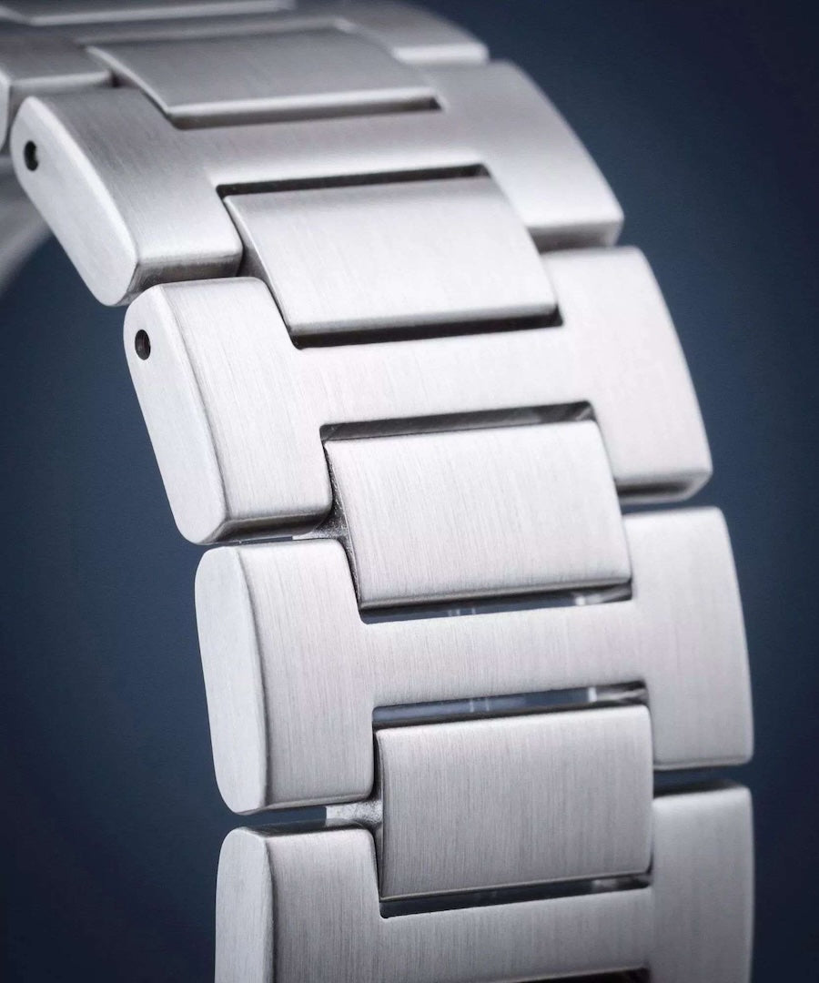 A tough sapphire crystal with anti-reflective coating protects the dial.