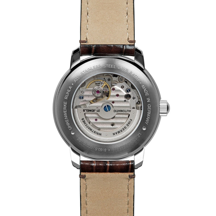 Cream dial with silver numerals/indices, luminous hands